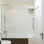 Τα δωμάτια βλέπουν ακριβώς σε κήπο. Τα μπάνια είναι εξοπλισμένα με μπανιέρα και μπιντέ.